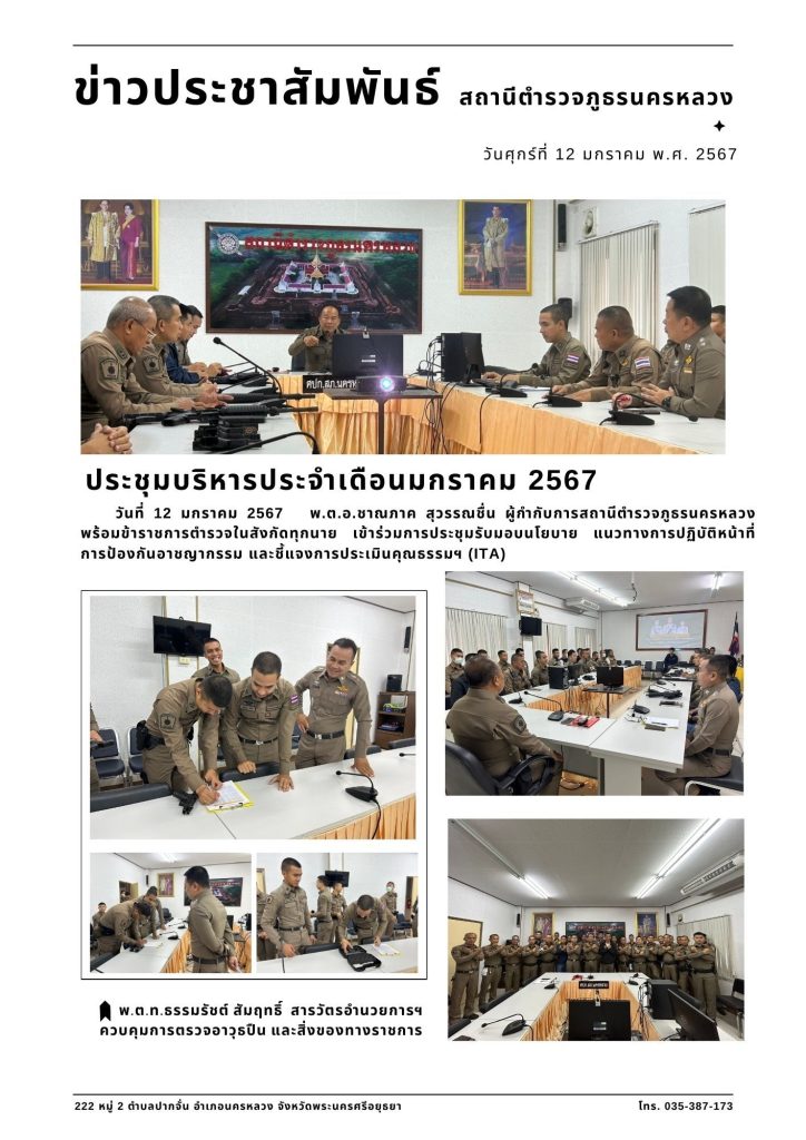 ข่าวประชาสัมพันธ์ สภ.นครหลวง 12 ม.ค. 67 12 มกราคม 2567 โดย police / ข่าวภารกิจผู้บังคับบัญชา FacebookFacebookXTwitterLINELine