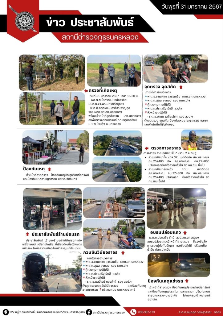 ข่าวประชาสัมพันธ์ สภ.นครหลวง 31 ม.ค. 67 31 มกราคม 2567 โดย police / ข่าวภารกิจผู้บังคับบัญชา FacebookFacebookXTwitterLINELine