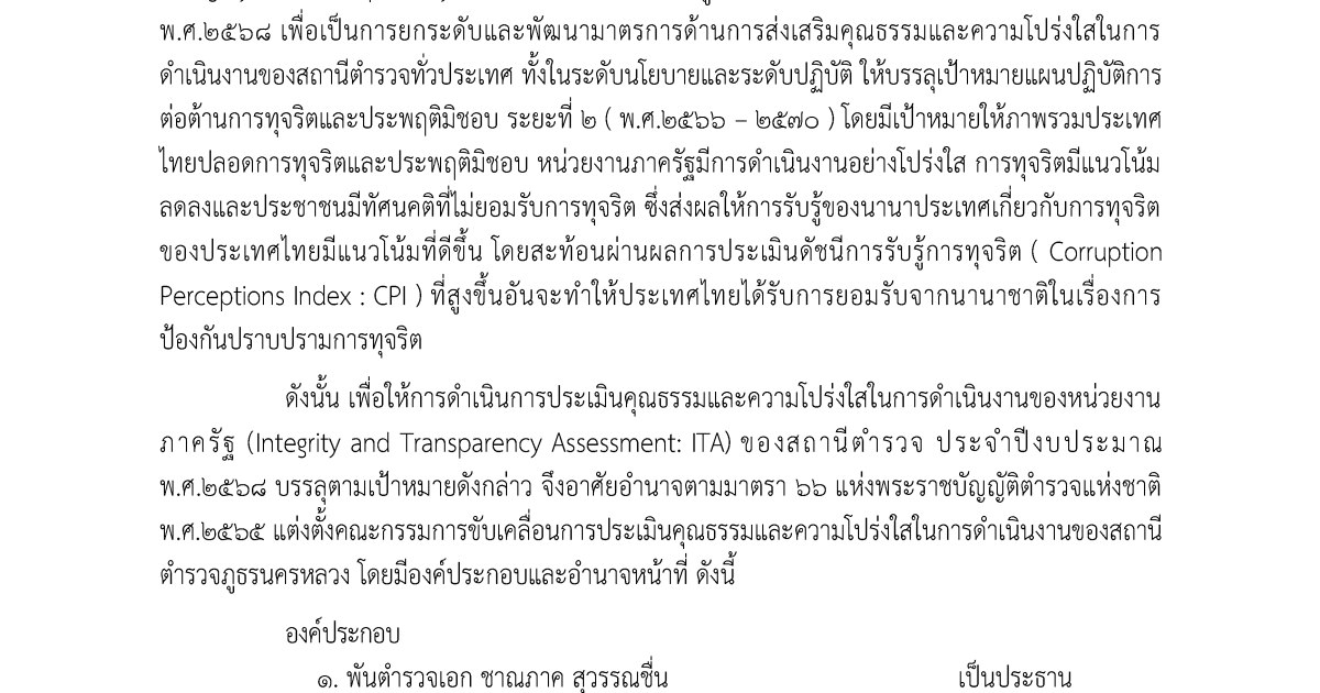 แต่งตั้งคณะกรรมการทำการประเมินคุณธรรมและความโปร่งใส่ในการดำเนินงานของหน่วยงานภาครัฐ(ITA)