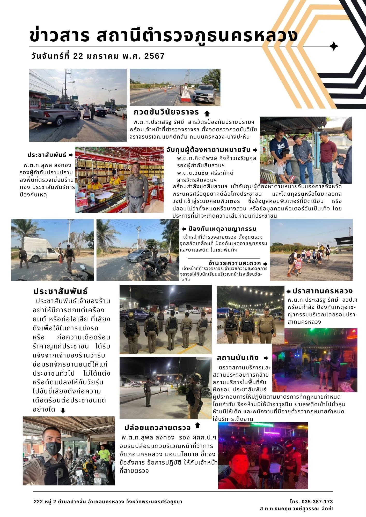 ข่าวประชาสัมพันธ์ สภ.นครหลวง 22 ม.ค. 67