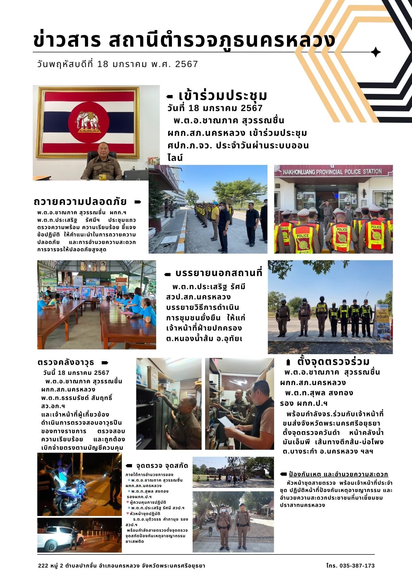 ข่าวประชาสัมพันธ์ สภ.นครหลวง 18 ม.ค. 67