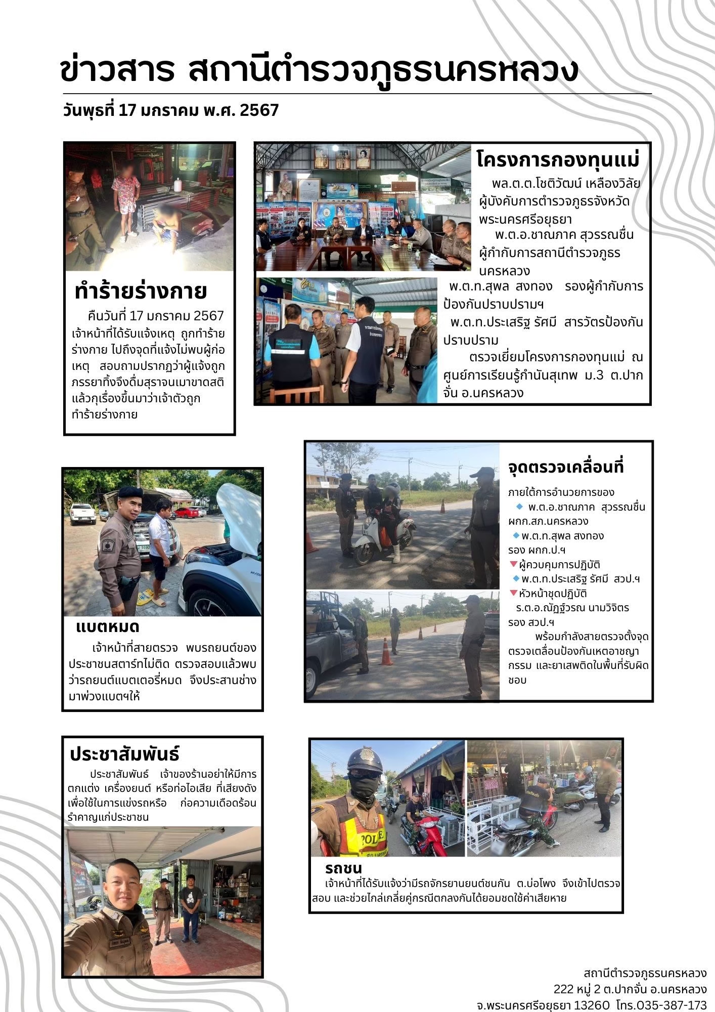ข่าวประชาสัมพันธ์ สภ.นครหลวง 17 ม.ค. 67