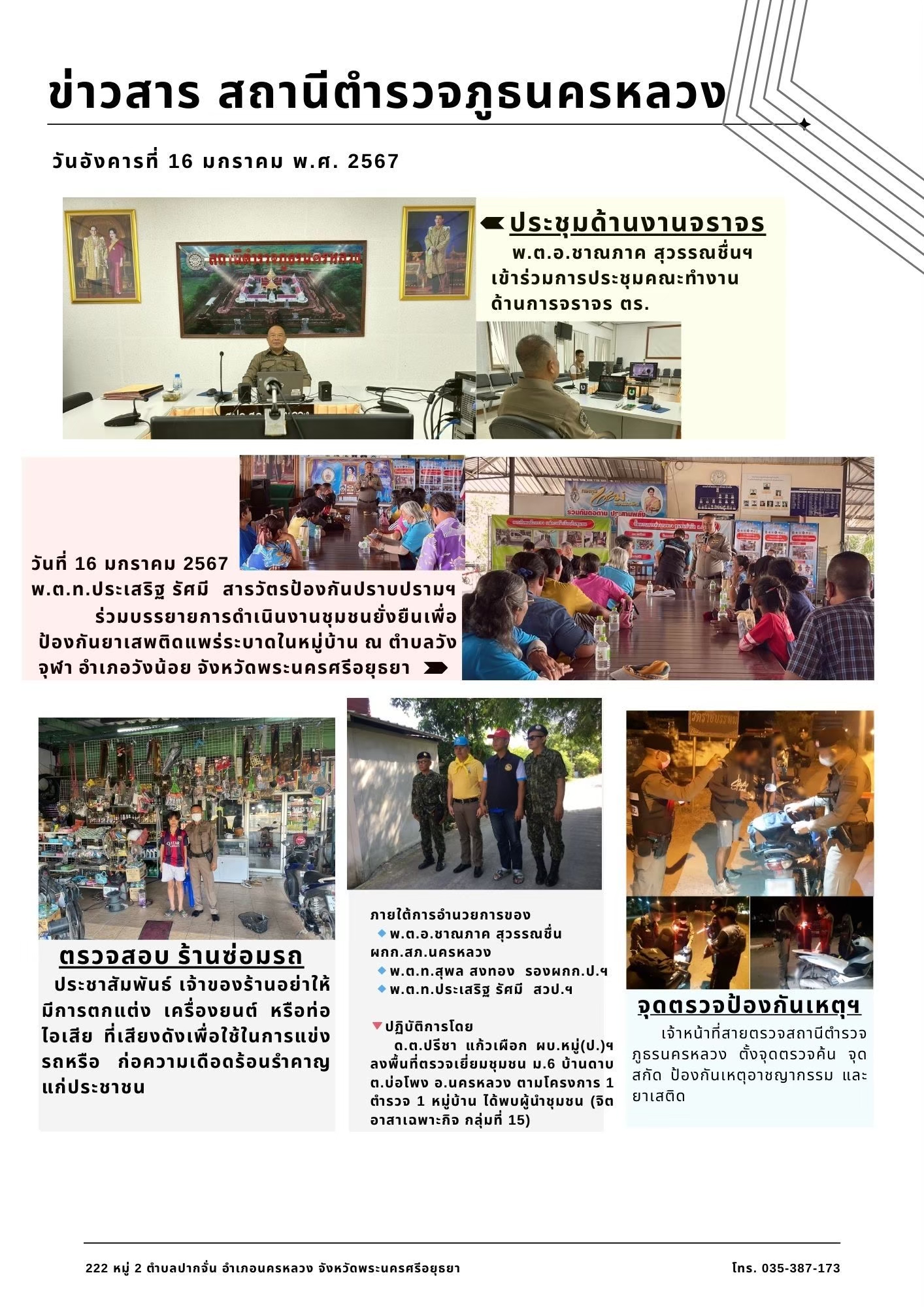 ข่าวประชาสัมพันธ์ สภ.นครหลวง 16 ม.ค. 67
