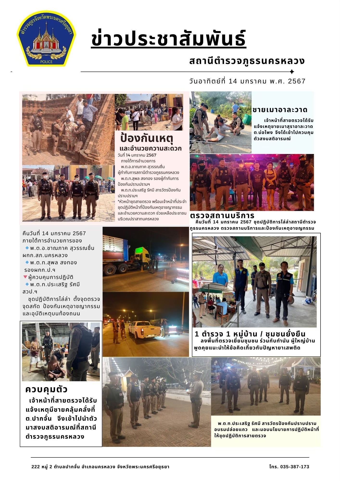 ข่าวประชาสัมพันธ์ สภ.นครหลวง 14 ม.ค. 67