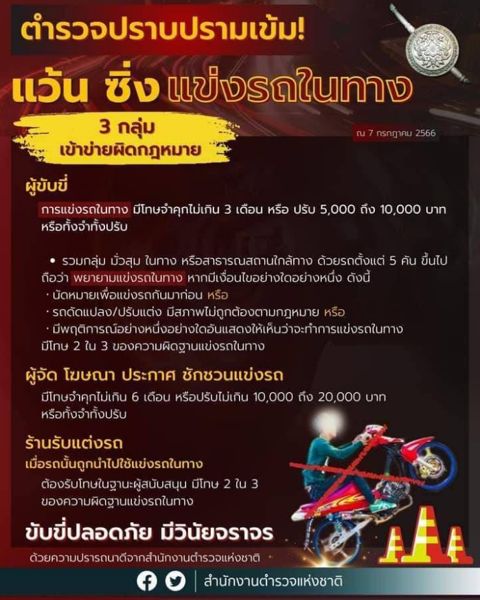 ตำรวจปราบเข้ม แว้น ซิ่ง แข่งรถในทาง